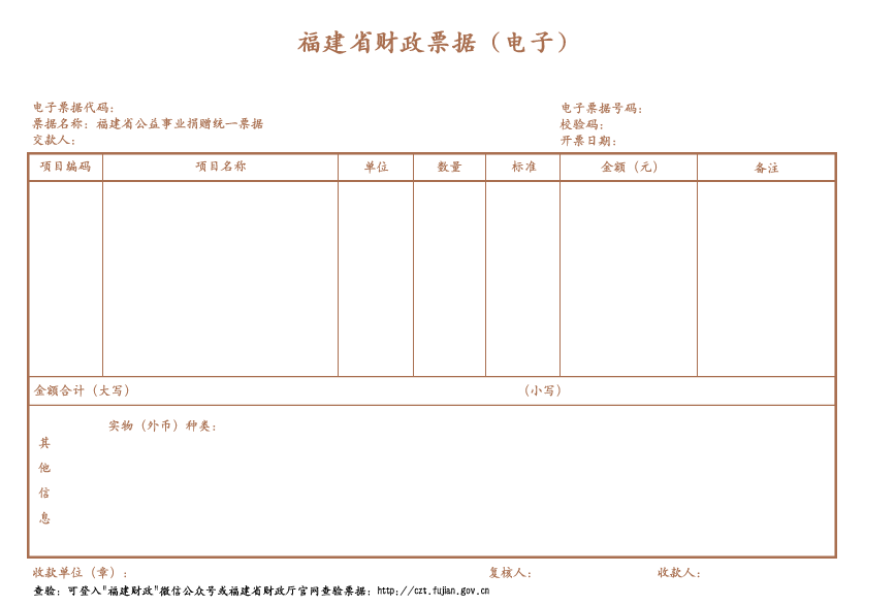 福建省公益事业票据样式(仅供参考)